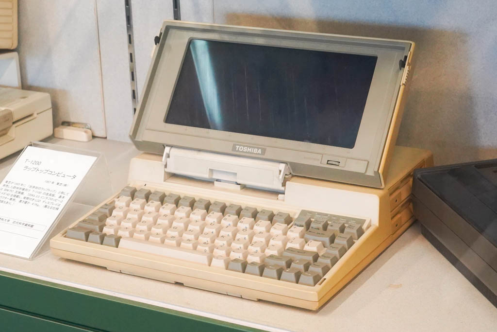 1985年に欧州で発売された東芝の「T1100」は、世界初のIBM PC互換ラップトップです。3.5インチFDDを搭載し、充電式電池での駆動を実現。従来の「持ち運べる」の域を超えた小型軽量化に成功しました。MS-DOSを採用し、デスクトップ機と同じソフトが動く実用性が高く評価され、今日のノートPCの原点としてIEEEマイルストーンにも認定されている歴史的モデルです。