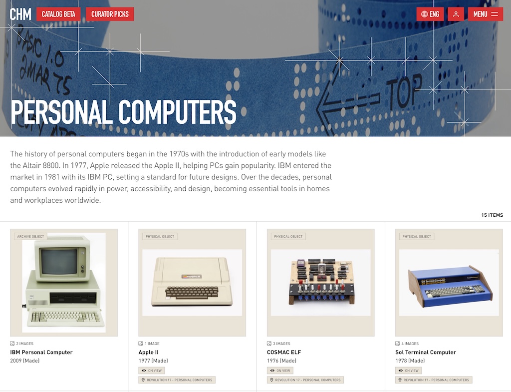 そのコンピュータ歴史博物館の展示物をオンラインで見ることができるようになりました。