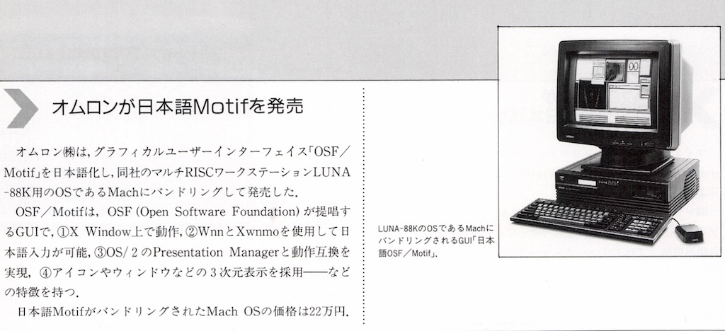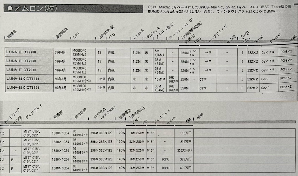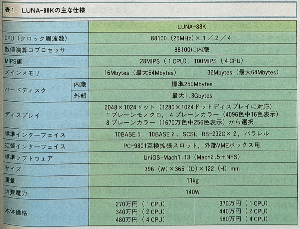 初代LUNAはCPUにMotorolaのMC68030を搭載。OSにはBSDベースの「UniOS-B」やSystem Vベースの「UniOS-U」を選択できるマルチOS環境を提供していました。