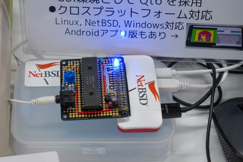 日本NetBSDユーザーグループのブースで披露されたのは、NECの名機「PC-6001」向けに制作されたPSG音源再生プログラムを、現代のハードウェア上で再現するという試みです。
